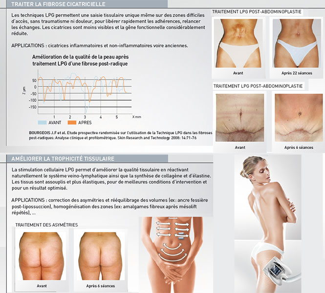 Combiner pour mieux traiterCombinées aux protocoles d’esthétique médicale, les techniques LPG permettent, de manière 100% naturelle et non-invasive, de réduire considérablement les suites opératoires grâce à un traitement pré et post- intervention et d’optimiser les résultats dans le temps.